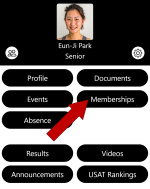 Tapping on the “Memberships” button allows the athletes membership and information to be tracked.