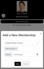 Select the type of membership to add, membership number and membership expiration.
